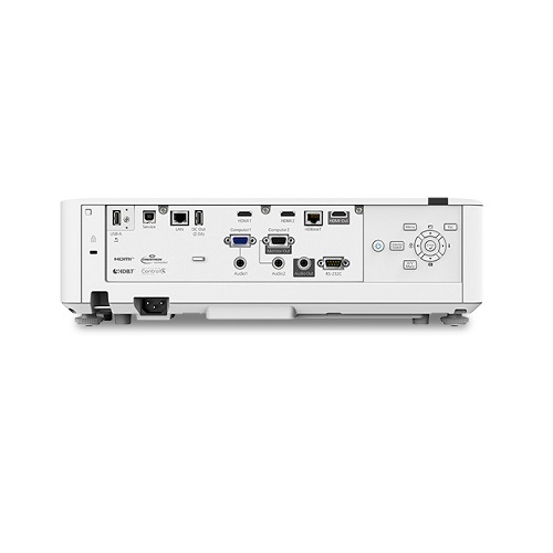 El Proyector Láser PowerLite L630U cuenta con entradas HDBaseT, dos VGA y dos HDMI para conectar varios dispositivos fuente. En cambio, una entrada VGA puede actuar como una salida para permitir que otra pantalla o proyector muestre el mismo contenido. El altavoz integrado de 10 W permite que el audio acompañe sus presentaciones sin utilizar altavoces externos. Se incluyen un cable HDMI y un control remoto IR para mayor comodidad.